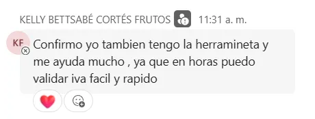 "Confirmo yo también tengo la herramienta y me ayuda mucho, ya que en horas puedo validar IVA fácil y rápido"