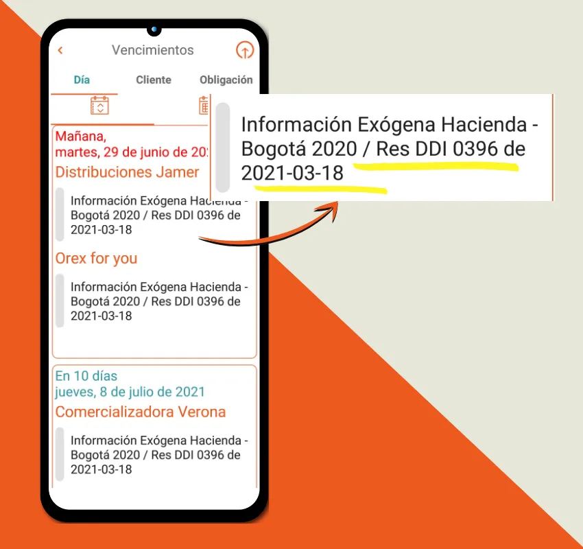 Los cambios constantes en fechas de vencimiento ya no serán un problema, nosotros los actualizamos para ti y te decimos cual resolución generó el cambio. Kontalid es la mejor app de calendario tributario y productividad.
