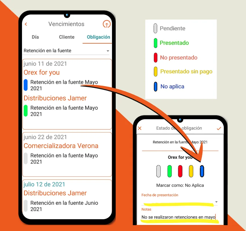 Marca el estado de las obligaciones con colores