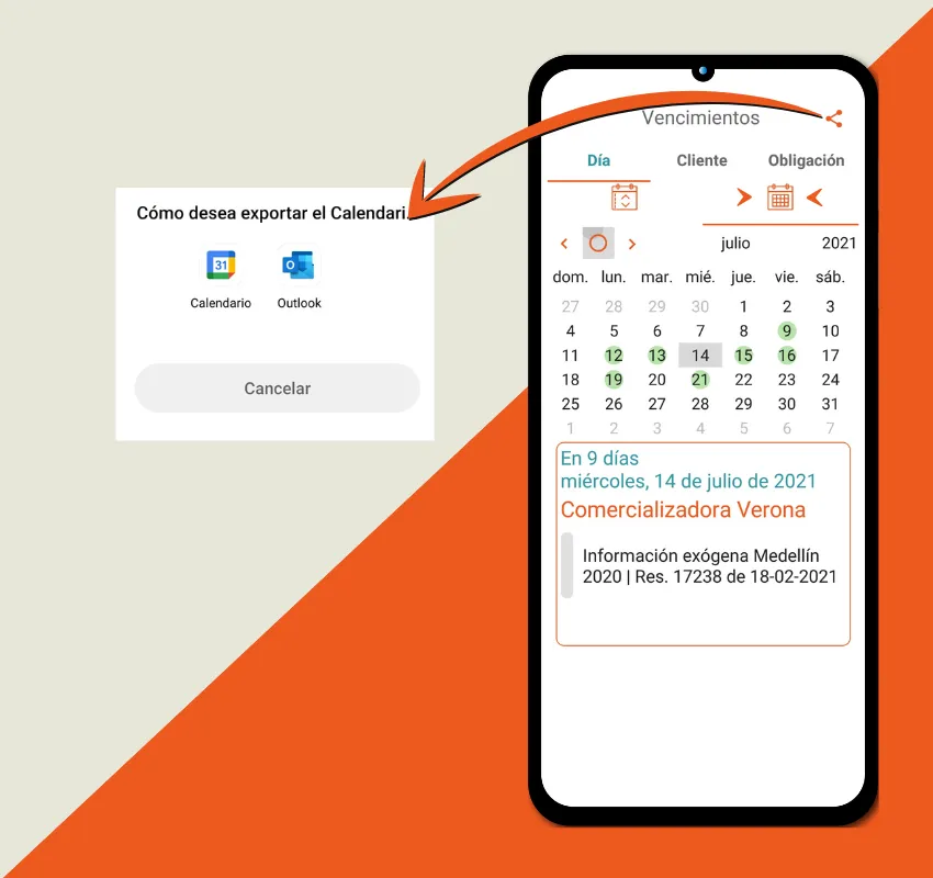 Ahorra tiempo compartiendo tus vencimientos fácilmente a tu App de calendario favorita.