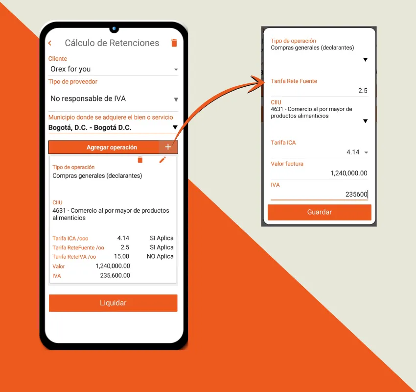 Calcula rápidamente el valor a pagar a los proveedores de tus clientes con base en las reglas de retención nacional más comunes para RENTA, IVA e ICA.