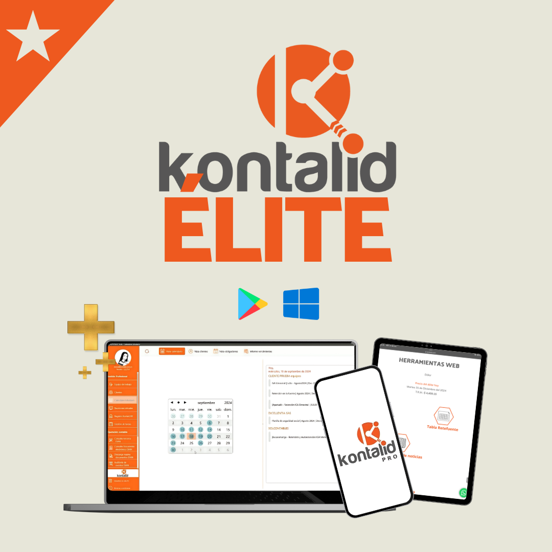 Kontalid es la navaja suiza de los contadores: la herramienta todo en uno que reúne todo lo que necesitas para simplificar tu día a día, desde calendarios tributarios automatizados y gestión de tareas en equipo hasta extracción de datos de terceros y herramientas operativas que liberan horas valiosas. No más hojas de excel y apps dispersas ni procesos manuales que roban tu tiempo; con una sola suscripción ANUAL Premium o Élite tienes la productividad, el control y la tranquilidad que mereces para enfocarte en crecer tu negocio y disfrutar tu vida.